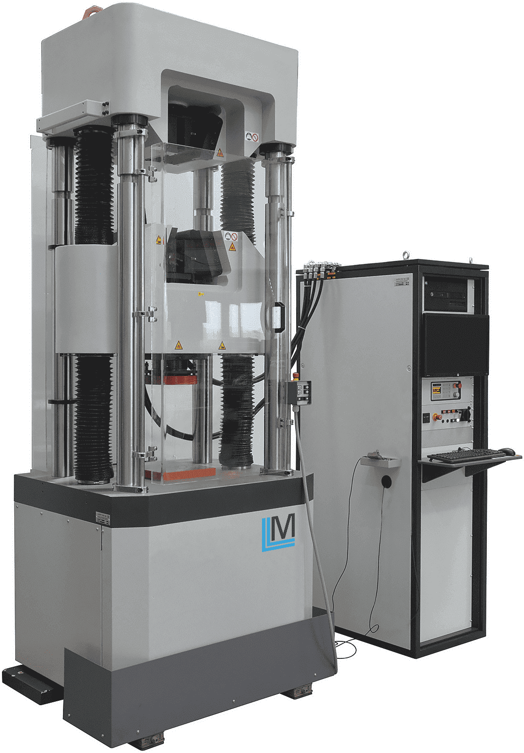Испытательная машина МГС-У-30 в напольном шестиколонном исполнении с высокой жесткостью и точной геометрией рамы нагружения. Предназначена для статических испытаний на растяжение, сжатие и изгиб образцов из различных материалов. Имеет четыре направляющие колонны и два приводных винта для регулировки тестового пространства с помощью позиционирования нижней траверсы.
